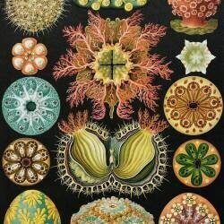 Ernst Haeckel fut un naturaliste, biologiste, zoologue, philosophe et dessinateur du XIXè siècle. Ses oeuvres célèbres sont "Chaetopoda, Marine Worms", "Discomedusae jellyfish" et "Basidiomycota Stinkhorn Mushrooms".