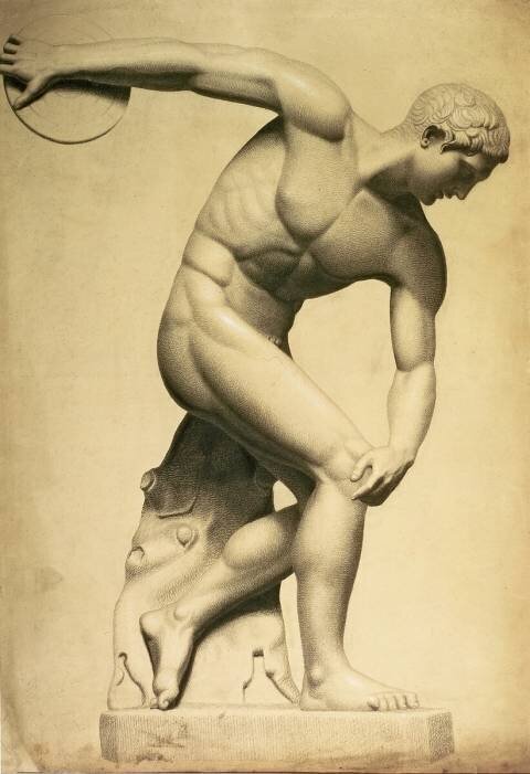 Ainsi, l’athlète est un héros moderne tout droit venu de notre antiquité : il est d’ailleurs l’un des principaux protagonistes de la sculpture et de la peinture sur céramique dans le monde grec.