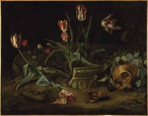 Les vanités sont un genre particulier de peinture, plus souvent des natures mortes, qui s’affirme au début du XVIIe siècle aux Pays-Bas. Dans les vanités, sont représentés des objets allégoriques fortement symboliques. Le plus emblématique de ces éléments est le crâne qui symbolise la mort. La bougie allumée, allégorie de la vie ou de la connaissance, le sablier, image du temps et les fleurs fanées, métaphore de la vieillesse, sont également des symboles peints par les artistes.