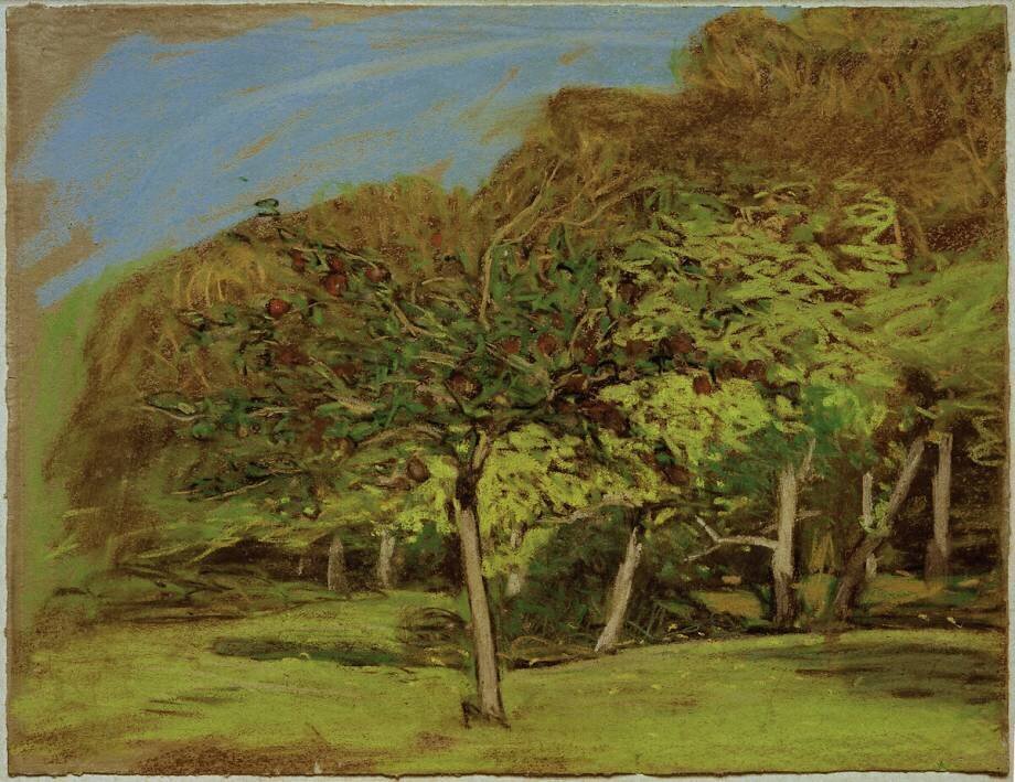 Mots-clés : 19e siècle, Impressionnisme, arbre, arbre fruitier, bosquet, nature, paysage, peinture, pommier, été