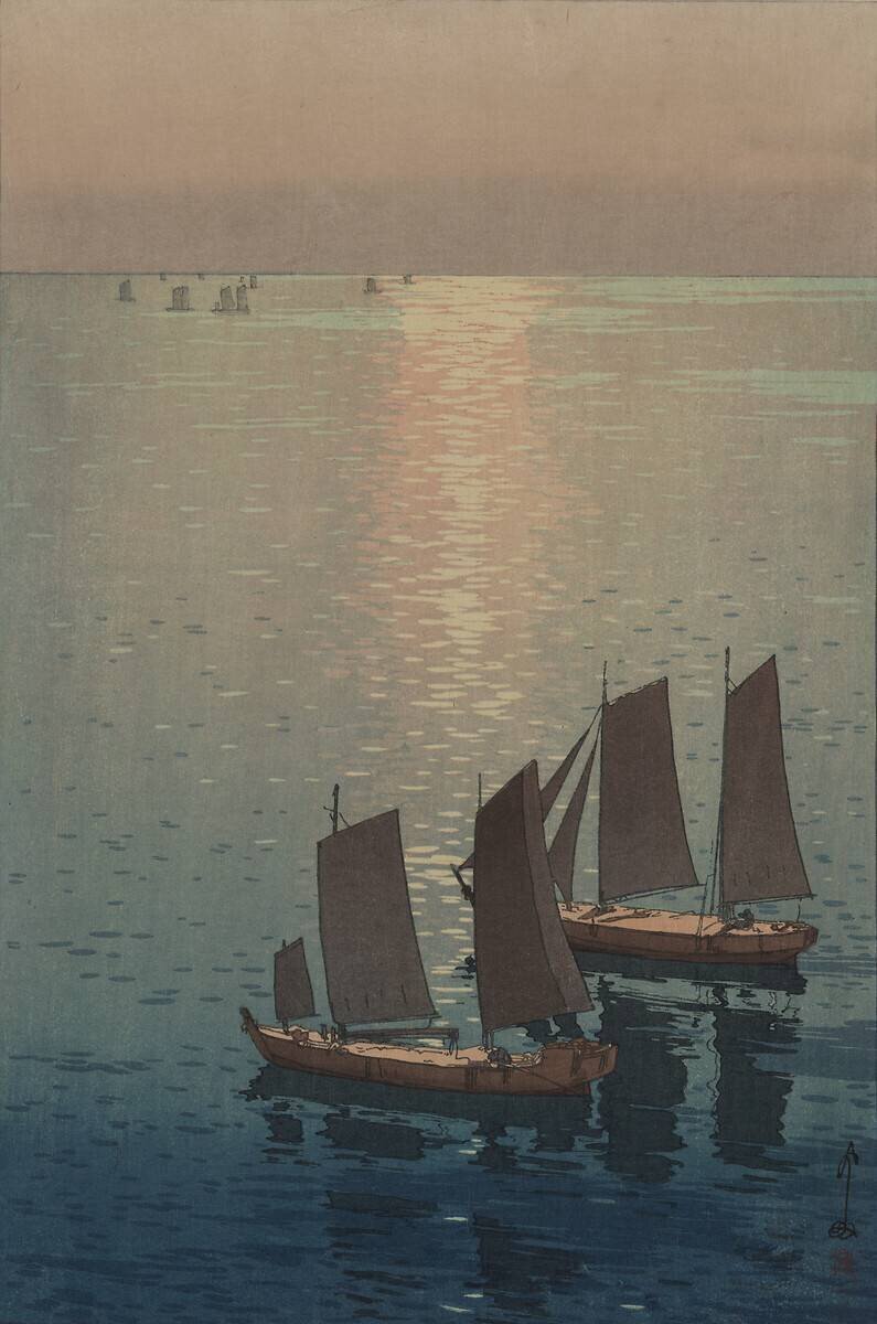 Reproduction d'estampe Bateaux à voile de Hiroshi Yoshida