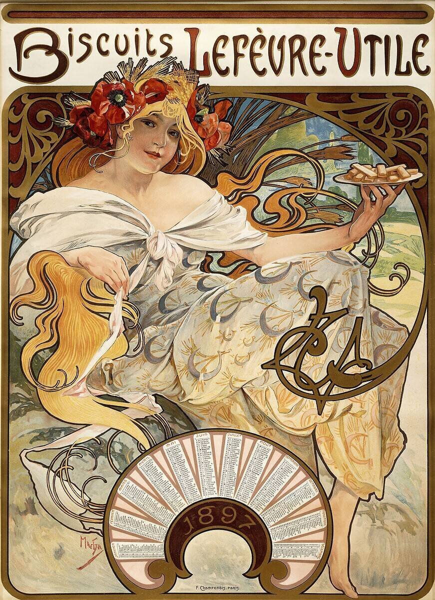 Biscuits Lefevre-Utile, calendrier pour 1897 de Alfons Mucha(Ref : 141579) © Christie's Images / Bridgeman Images