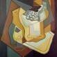 Mots-clés : 20e siècle, Cubisme, peinture, assiette, bol, bouteille, espagnol, flacon, fruit, nature morte, peinture, table, verre, écuelle