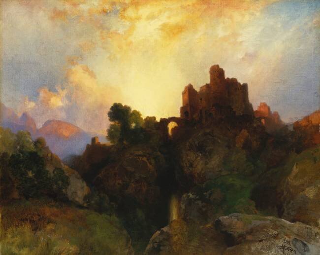 Sujets: PaysageMots-clés: Ecosse, château-fort, ciel, coucher de soleil, montagne, nuage, nuée, paysage, roche, rocher, soir, soleil(Ref : 341701) © Photo © Christie's Images / Bridgeman Images