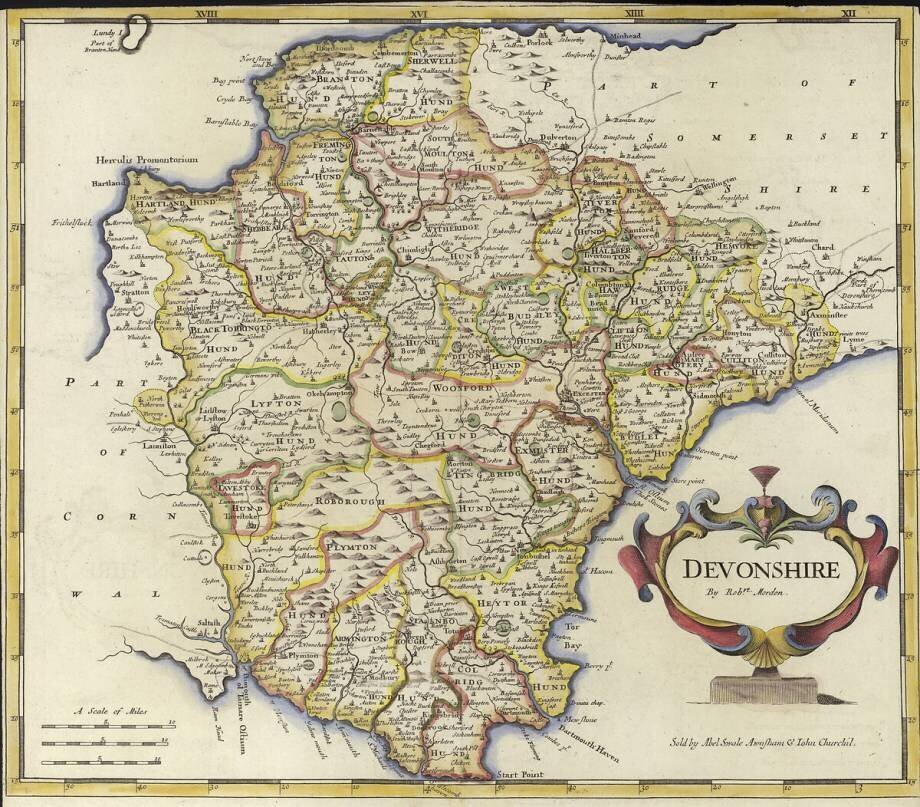 Reproduction de gravure Carte du Devonshire de Robert Morden