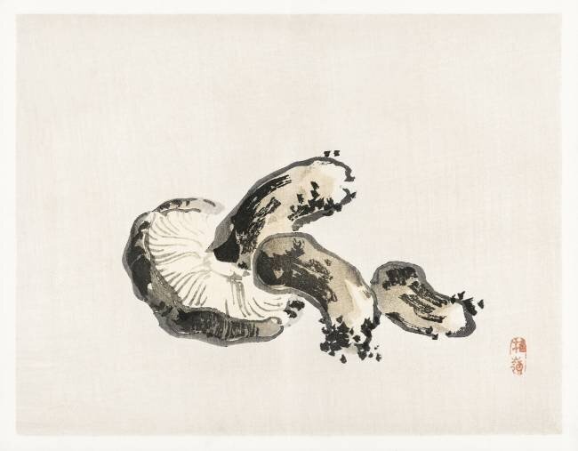 Reproduction d'estampe Champignons shitake de Kono Barei