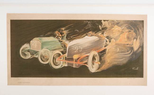 Le lieu de conservation de « Course automobile » est Musée de la Voiture, Compiègne, France.