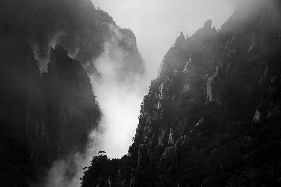 Sujets: PaysageMots-clés: arbre, black art, brume, montagne, noir et blanc, paysage, roche(Ref : 195550) © Aijun Wang / 1X