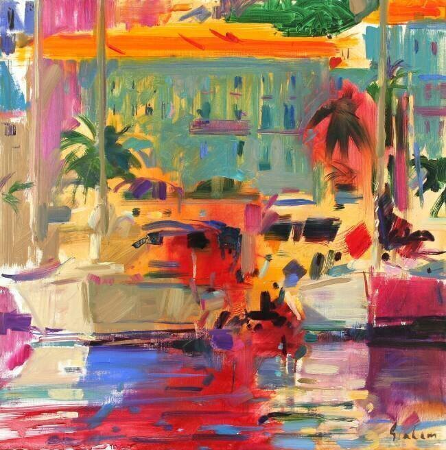 Mots-clés : peinture, arbre, architecture, art textile, bateau, botte, côte, mer, palmier, peinture, port, port, rivage, transport, ville