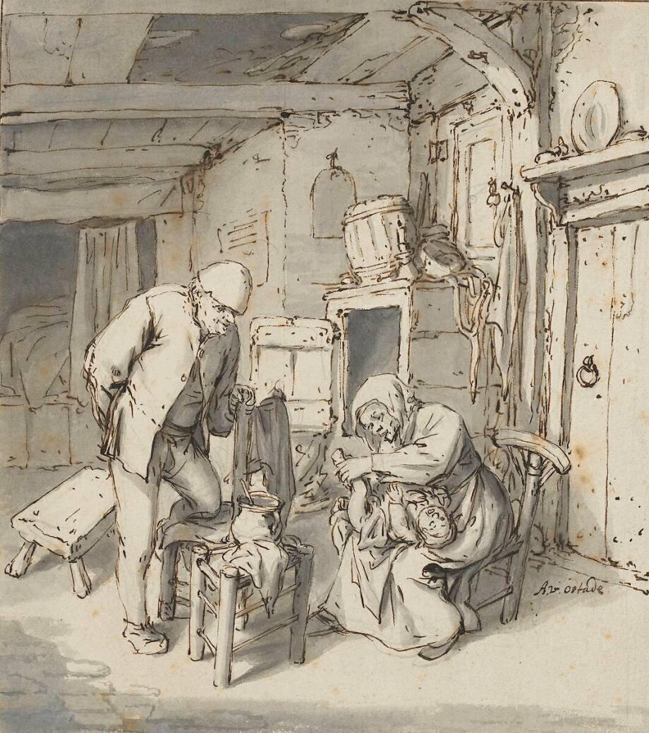 Reproduction de dessin Intérieur de paysans de Adrien van Ostade