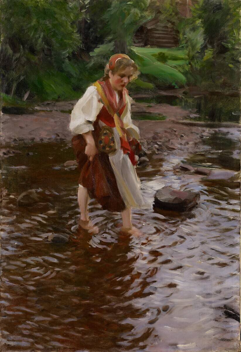 Sujets: PortraitMots-clés: Europe, peinture, Scandinavie, Suède, costume, costume traditionnel, eau, européen, fille, fleuve, peinture, rivière, scandinave, traversée(Ref : 276730) © Minneapolis Institute of Art The Christina N. and Swan J. Turnblad Memorial Fund / Bridgeman Images