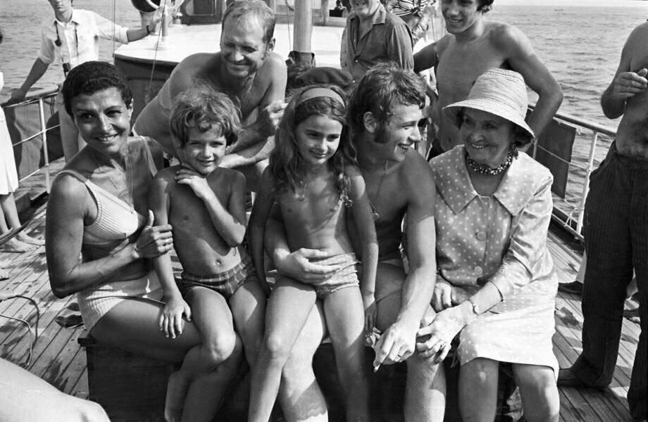 Le chanteur français Johnny Hallyday en vacances avec sa famille en 1967 sur la Côte d'Azur avec sa cousine Desta.