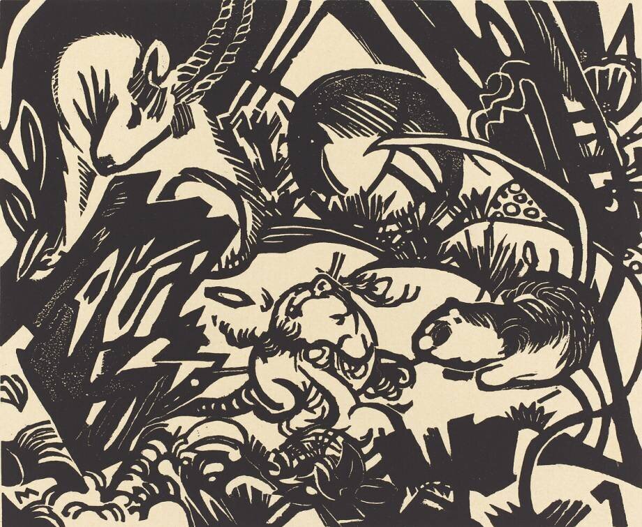 Mots-clés : Expressionnisme, Expressionnisme allemand, animal, antilope, chèvre, estampe, fauve, habitat, jungle, motif, tigre