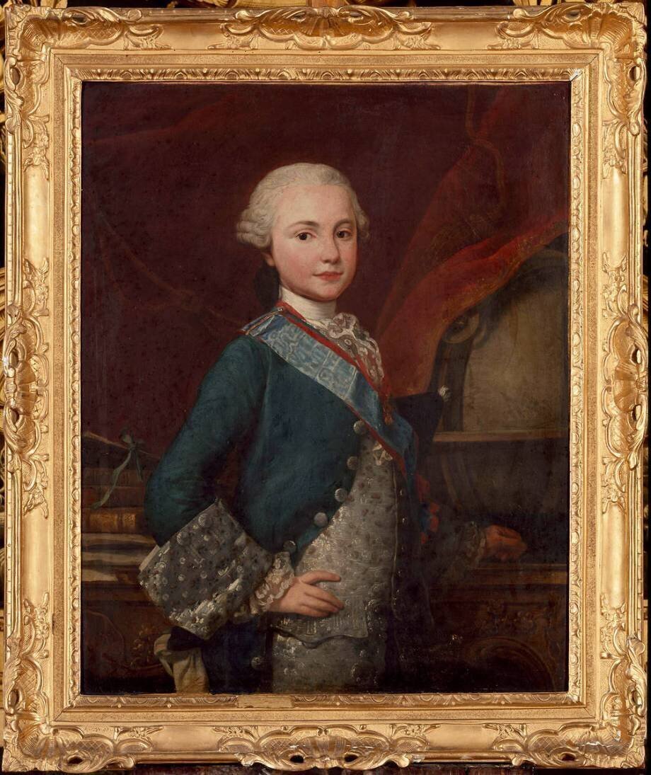 (futur Louis XVIII) (1755-1824)- représenté âgé de 12 ans, devant un globe terrestre