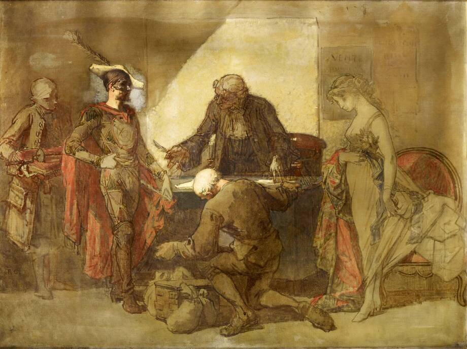 Sujets: Scène de genreMots-clés: Arlequin, Néo-Classicisme, homme, homme de loi, jeune fille, mariage