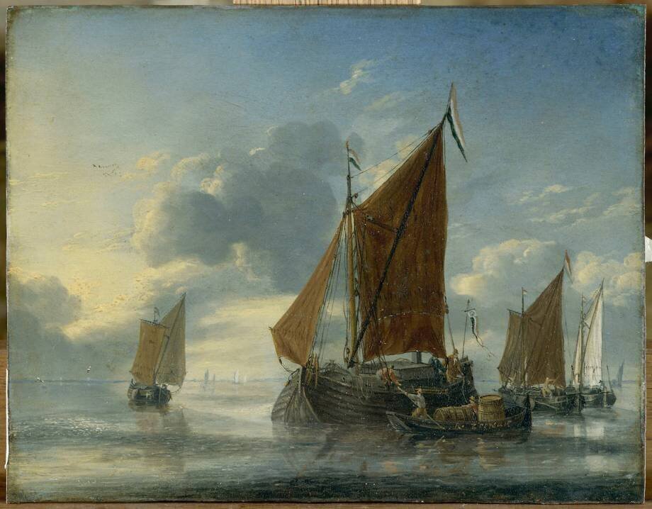 Reproduction de tableau Marine : barque accostant un gros voilier de Zeeman