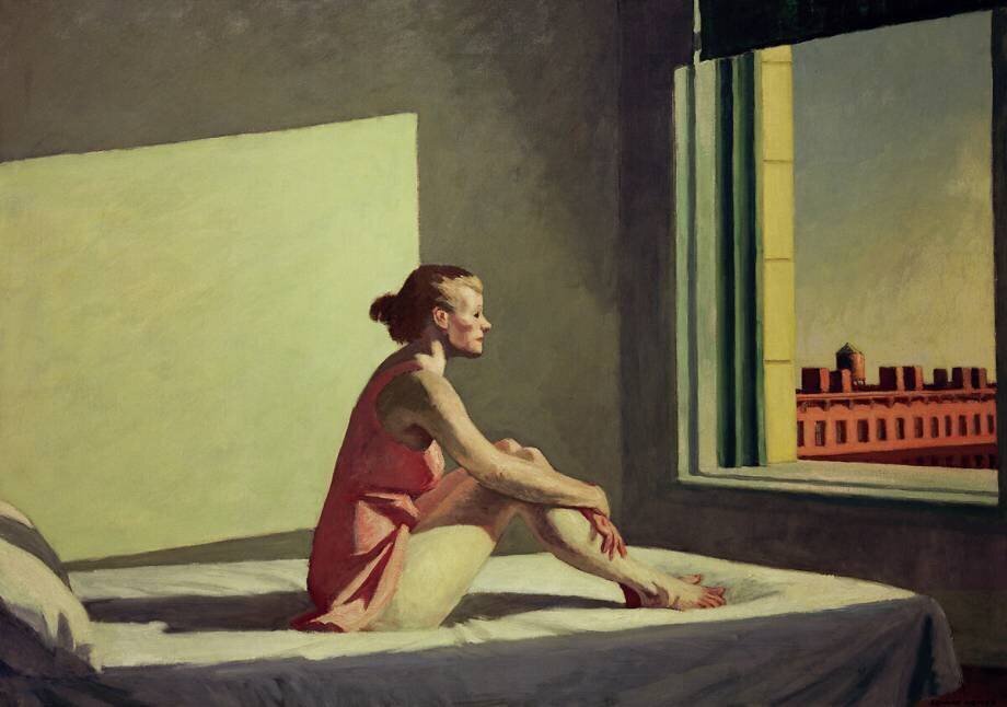 Mots-clés : 20e siècle, Réalisme, chambre, femme, fenêtre, lit, matin, peinture, portrait, profil, solitude, tableau