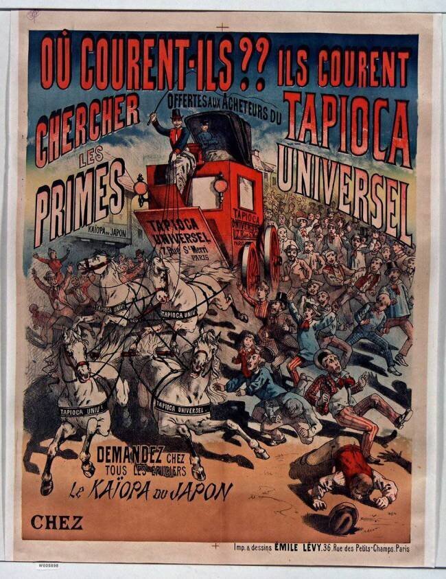 Reproduction d'art Où courent-ils ? Ils courent chercher les primes offertes aux acheteurs de Tapioca universel de anonyme