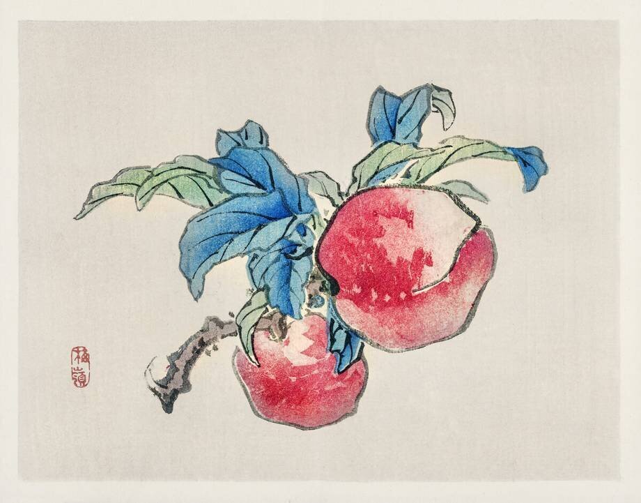 Mots-clés : 19e siècle, Japon, estampe japonaise, feuille, fruit, pêche fruit, style japonais