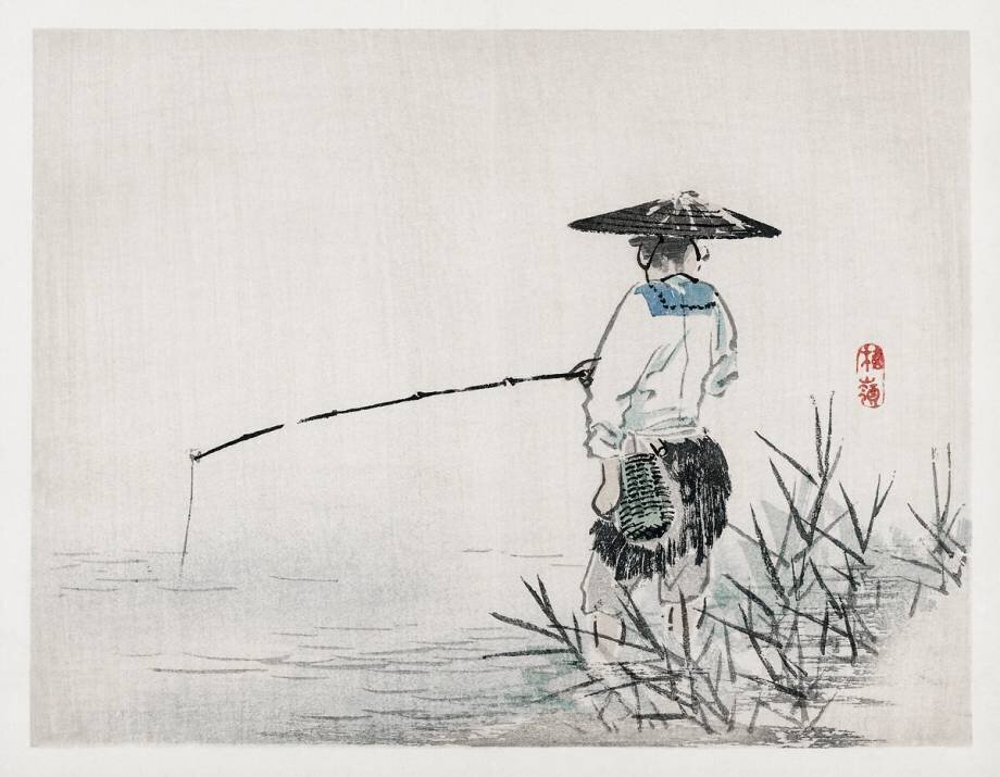 Mots-clés : 19e siècle, Japon, de dos, eau, estampe japonaise, pêche, pêcheur, style japonais