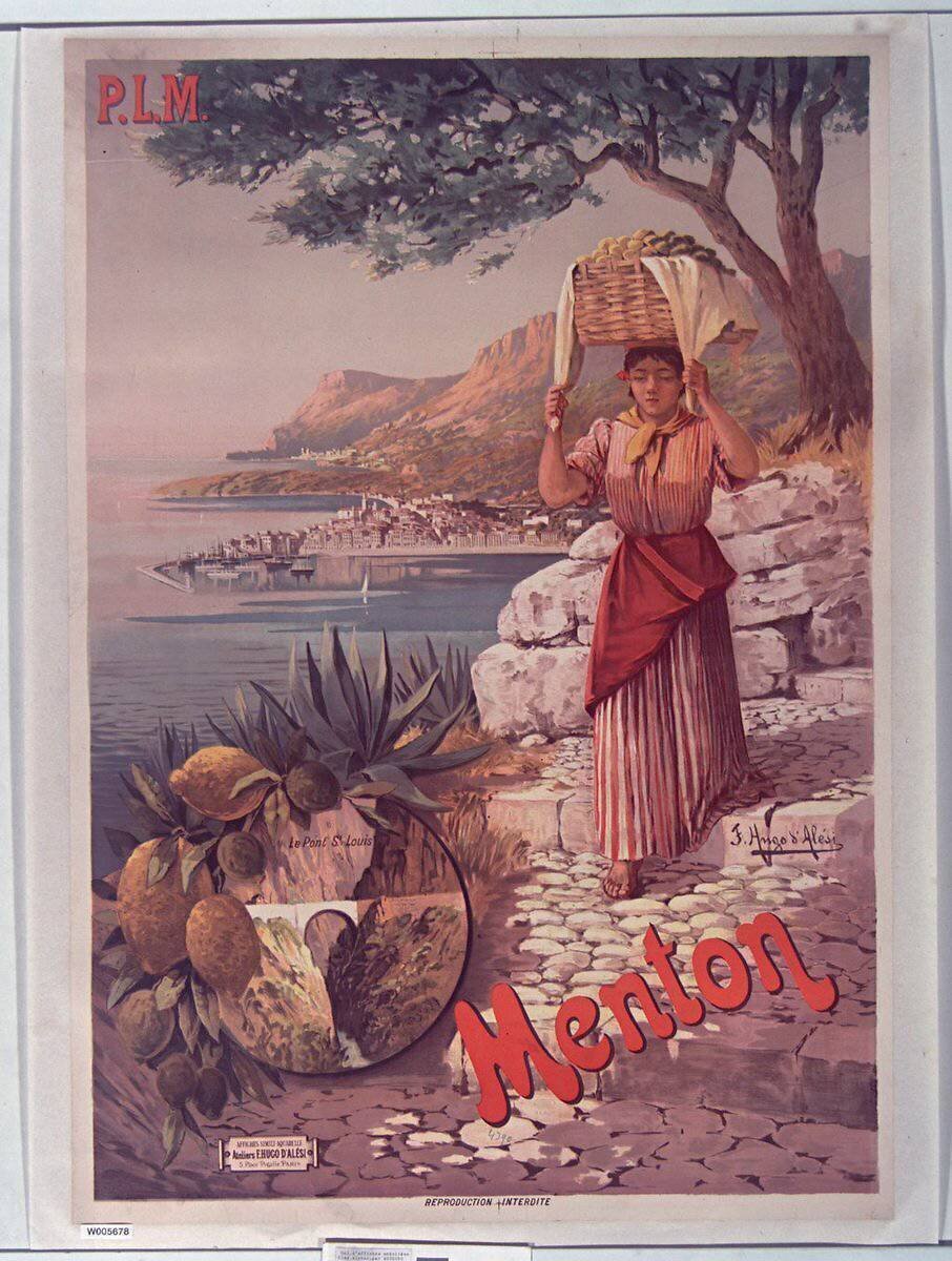 Reproduction d'art P.L.M. [Paris-Lyon-Méditerrannée] Menton de Hugo d'Alesi