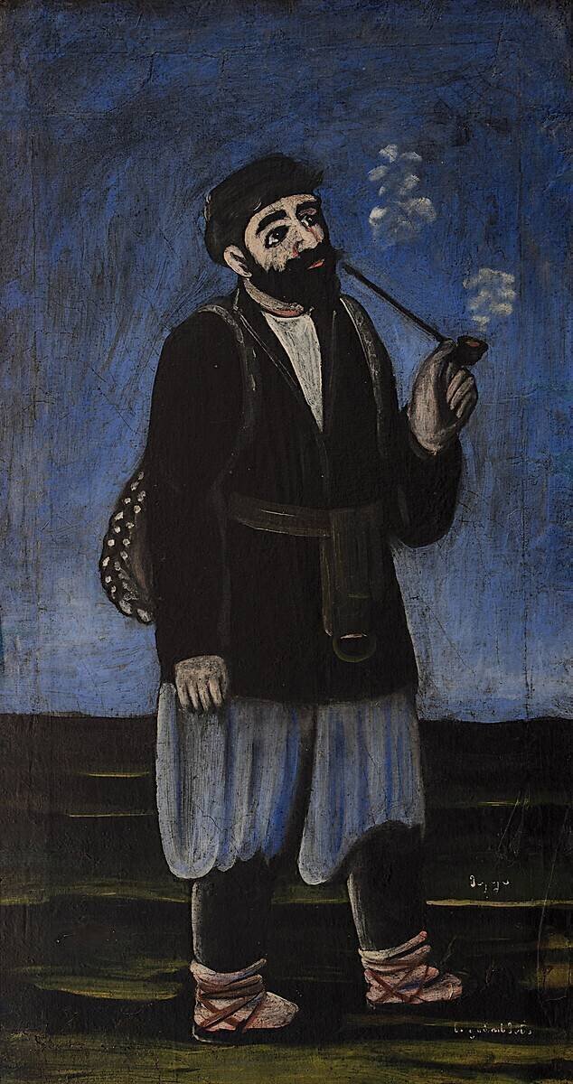 Mots-clés : Art naif, Job, peinture, portrait, chapeau, costume, fumeur, homme, peinture, pipe, portier, portrait, Travail