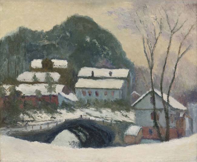 Sujets: MarineMots-clés: France, Norvège, peinture, Scandinavie, français, hiver, neige, norvégien, peinture, pont, scandinave, village(Ref : 241420) © Christie's Images / Bridgeman Images