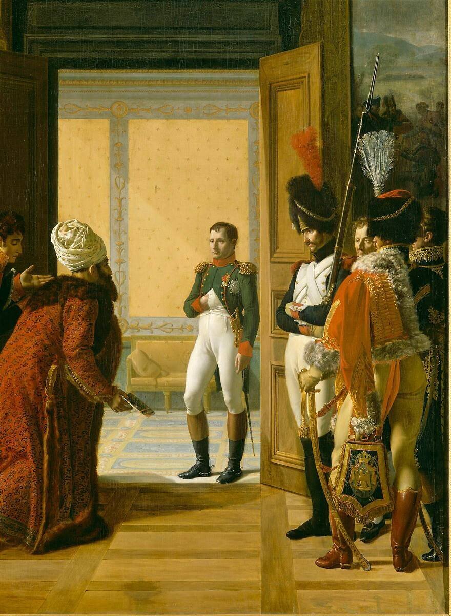 Napoléon Ier reçoit au château de Finkenstein en Pologne, l'Ambassadeur du Shah de Perse (Georges Outrey, vice-consul de France à Bagdad, présente Mohammed Mirza Reza)