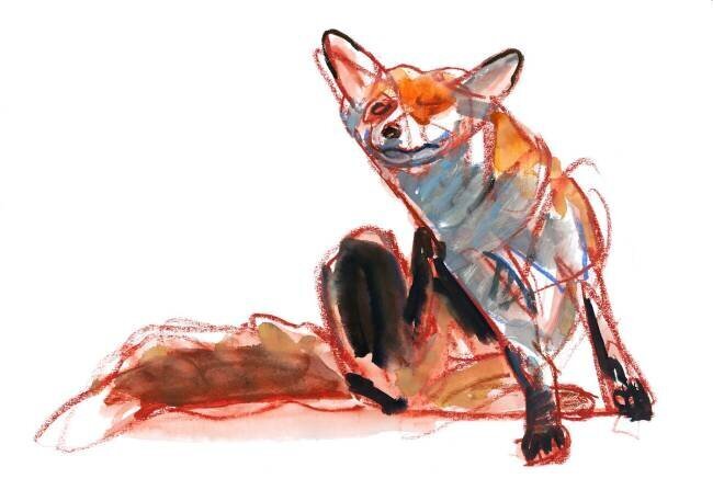 Mots-clés : 21e siècle, peinture, animal, art textile, colorisé, couleur, croquis, dessin, esquisse, peinture, renard, rouge