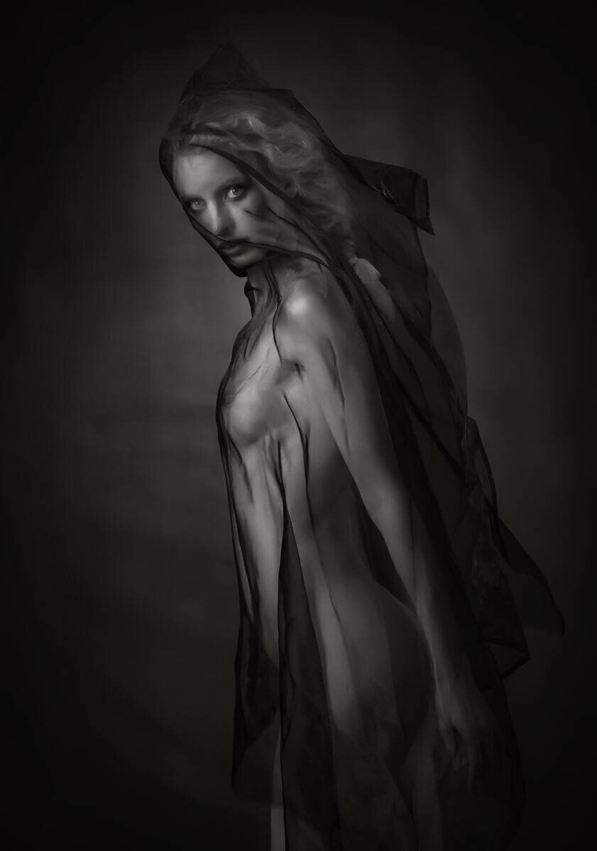 Mots-clés : effet de transparence, femme, modèle, nu, nu féminin, voile (coiffure)