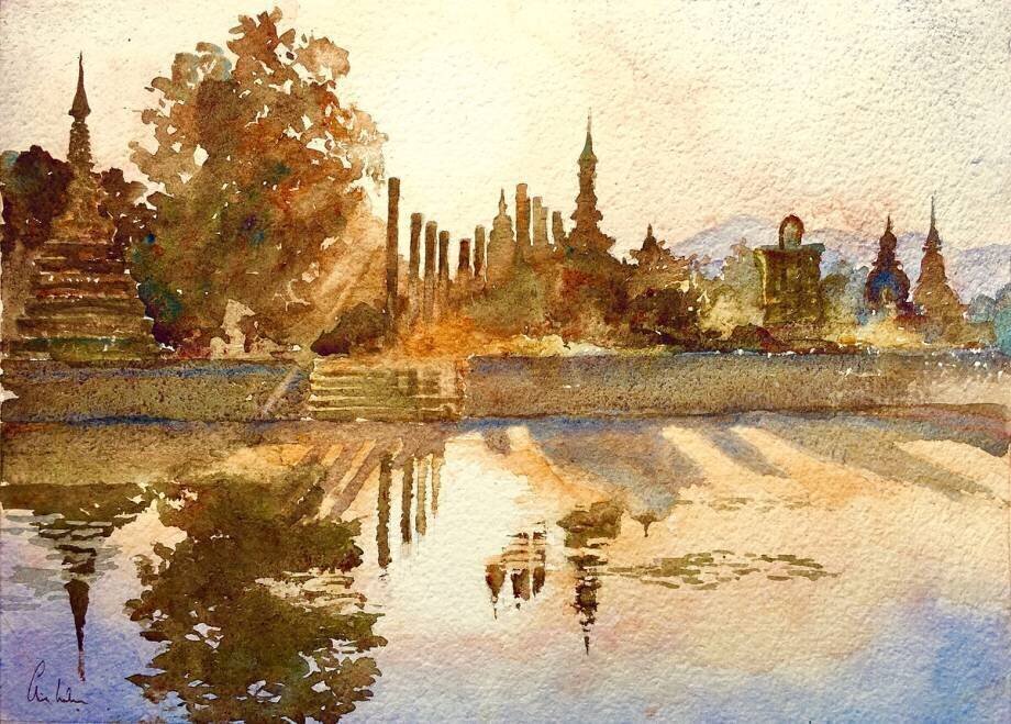 Mots-clés : peinture, Thaïlande, architecture, bal, coucher de soleil, eau, foi, peinture, religion, soleil