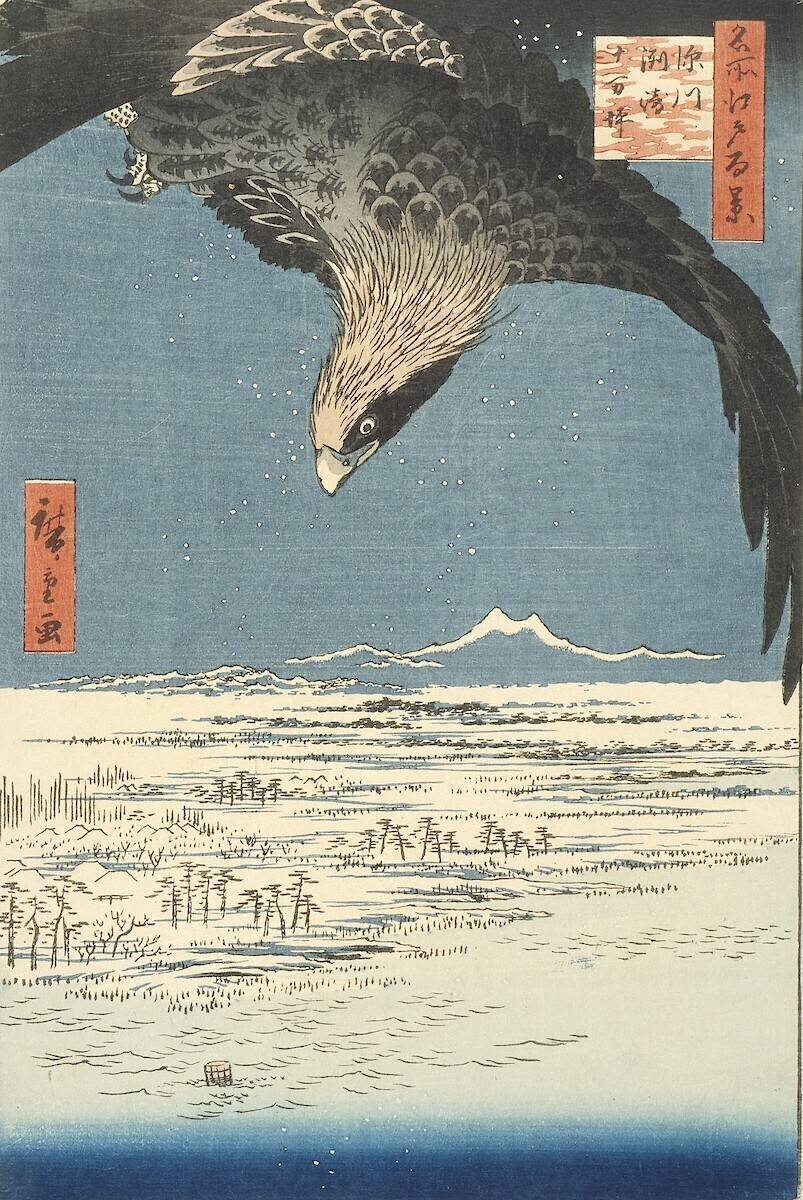 Reproduction d'estampe Susaki et la Plaine de Jûmantsubo près de Fukagawa de Hiroshige