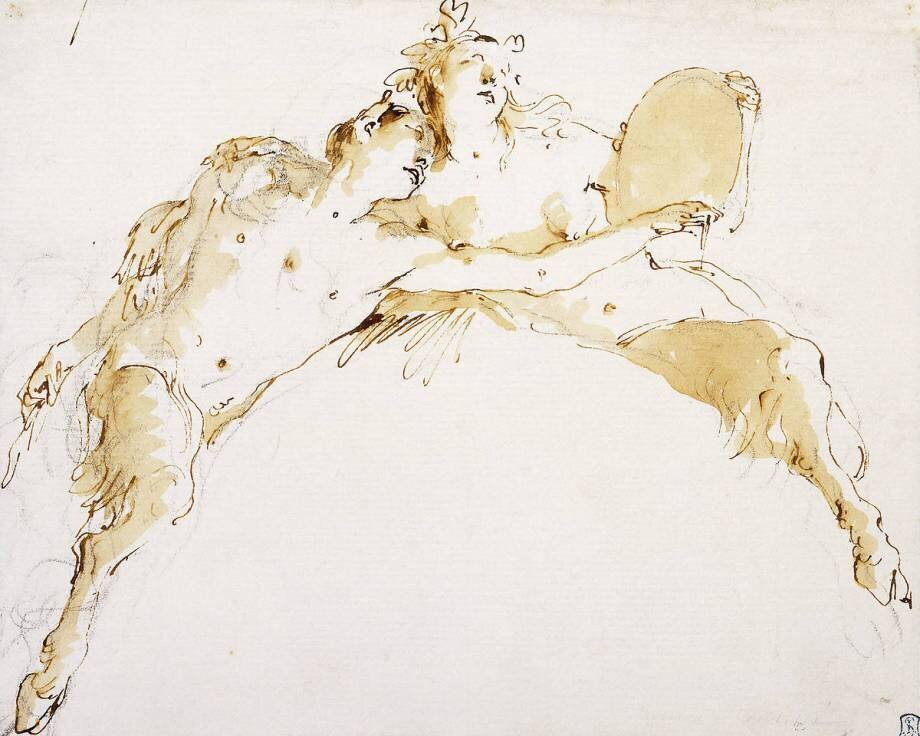 Un Faune et une Faunesse portant un tam... DE Giambattista Tiepolo