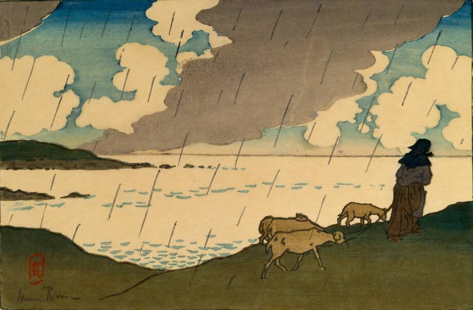 Mots-clés : 19e siècle, Bretagne, France, côte, femme, mer, nature, nuage, océan Atlantique, paysage, pluie, tempête