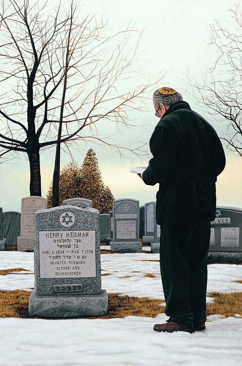 Mots-clés : Hyperréalisme, cimetière, homme, neige, prière, tombe