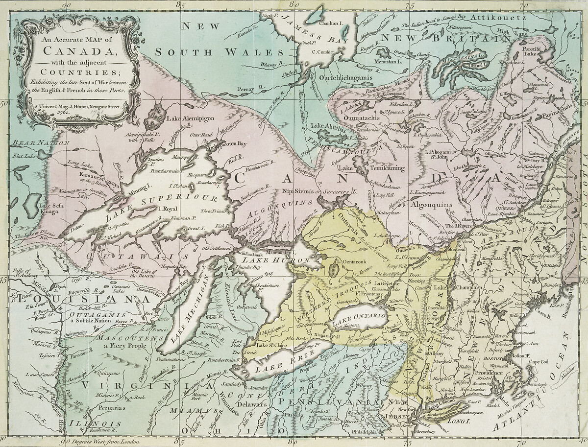 Mots-clés : Amérique, Amérique du Nord, Canada, anglais, atlante, carte, carte géographique, côte, estampe, français, gravure, guerre, relief, relief, secours
