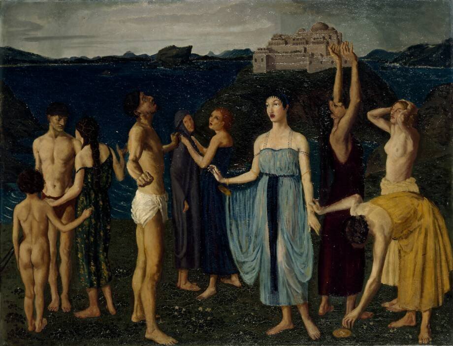 Une frise de figures debout dans un paysage de Elsie McNaught(Ref : 323965) © Bridgeman Images