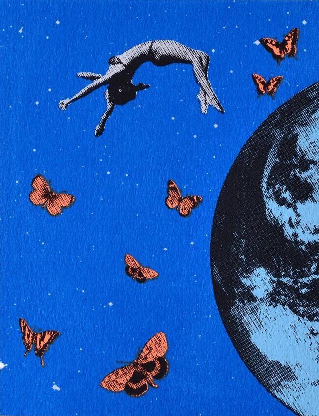Mots-clés : Collection Petit Artiste, Pop Art, enfant, espace, fille, illustration, liberté, lune, natation, nage, papillon, saut, songe, rêve
