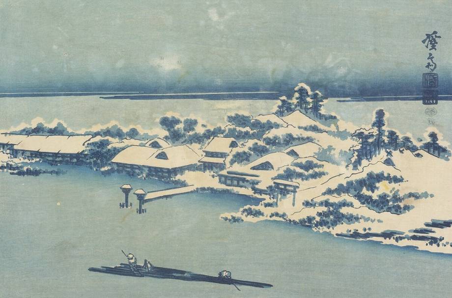 Reproduction d'estampe Village de l'île dans la neige de Keisai Eisen