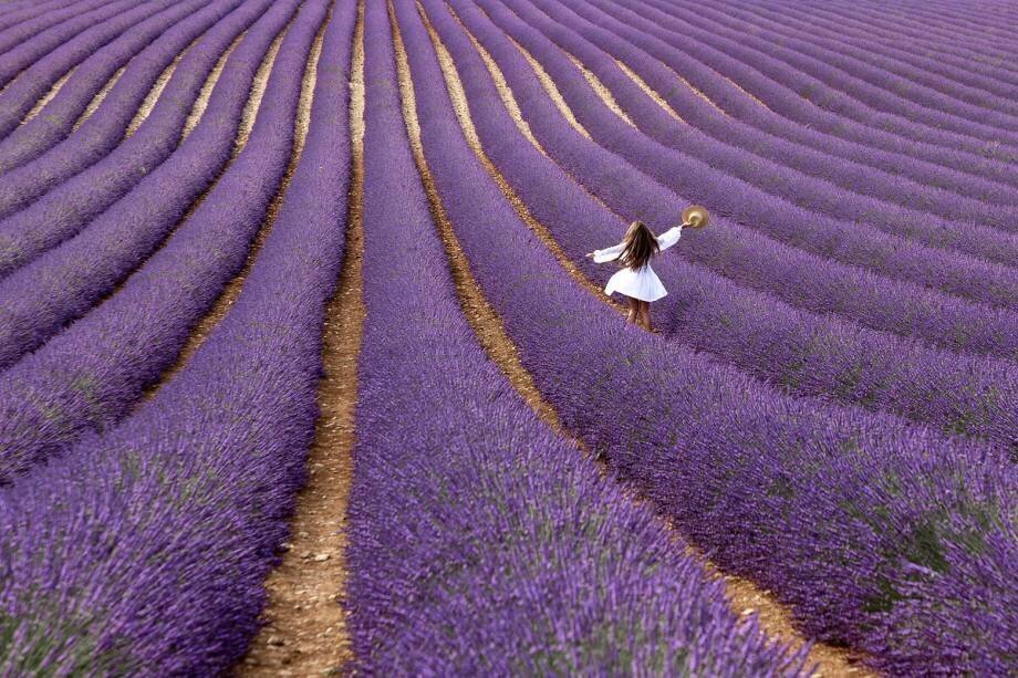 Sujets: PaysageMots-clés: chapeau, femme, fleur, lavande, robe, violet, violette(Ref : 230386) © Massimo Della Latta / 1X