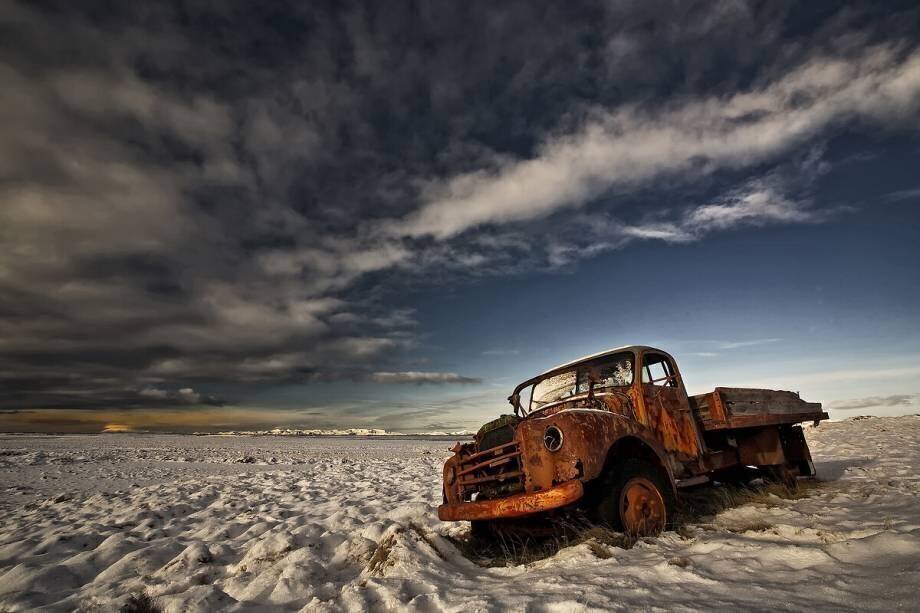 Sujets: PaysageMots-clés: camion, ciel, neige, ruines, en ruines(Ref : 258736) © Torsteinn H. Ingibergsson / 1X